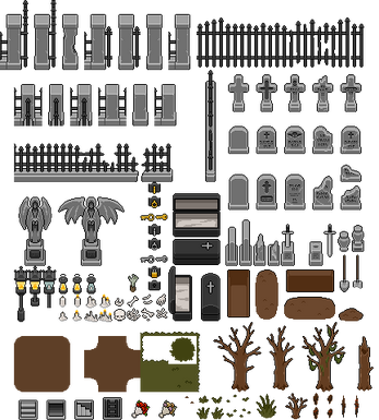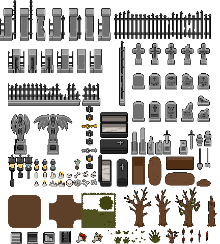 File type: zip file containing png - each asset type on individual sheet. Items have been aligned so they can be sliced into 16x16 tiles. Includes versions with/without shadows and room/door tiles.